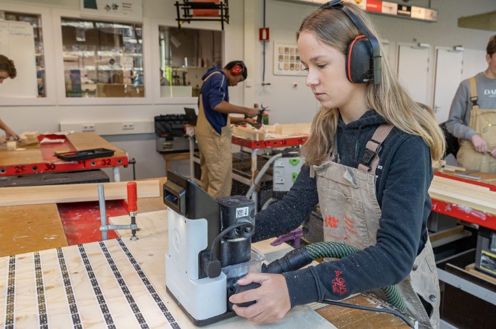 In de praktijk ontstaat er nog wel eens een verschil van mening over het aantal leerlingen in een praktijklokaal dat de docent verantwoord vindt en wat de directie acceptabel vindt. Hoe zorg je voor veilig onderwijs in een praktijklokaal zonder dat de kosten uit de hand lopen? Voor Het Perron, de school voor praktijkonderwijs in Veenendaal, is het antwoord simpel: ga met elkaar om tafel en maak duidelijke afspraken, aldus directeur Daan Diepeveen en vakgroepvoorzitter Bouwen, Wonen en Interieur (BWI) Kaj Wassink. |